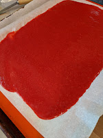 My first batch was wonderful it was a Strawberry Fruit Leather. That post gives you the "How To" of fruit leather. You can do this in the oven set at the lowest temperature 170 degrees or in your dehydrator. I have done both and this post will give you the Yeah ! and Nah! of that first try.