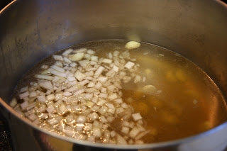 This is my broth simmering with chopped onions and garlic.