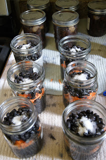 Here are my jars filled with what I later think was to many beans. I will add less beans next time and more broth !