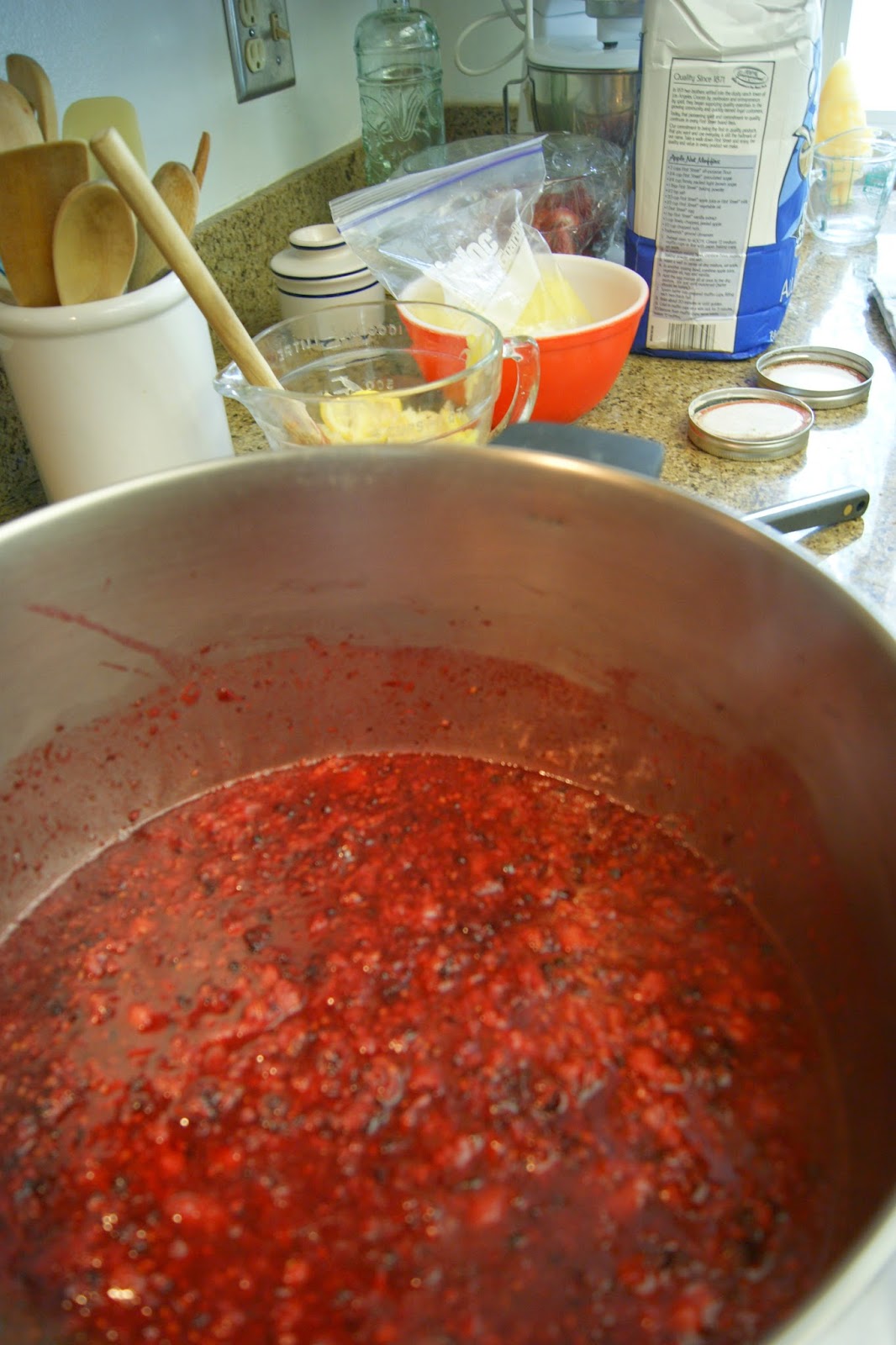 Get all your stuff ready water-bath, jars, lids and twist tops Ah yes your Berries! Keep your jar's in the warm water-bath this way when you are ready to jar up your jam the jar's will be ready. As you Preserve More food's you will just naturally have all the stuff you need ready and waiting.