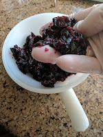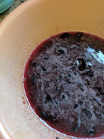 Now that your ginger is chopped add it to the pot stir and then add the the remaining blueberries, sugar and lemon zest. As most of you know we do not use pectin.