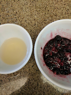 Put your blueberries and half of the sugar and the lemon juice into your pot and start this on a low simmer. This will release some of the juices from your fresh blueberries. While they simmer use a potato smasher to crush the blueberries.