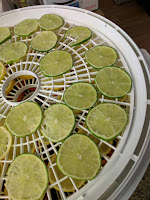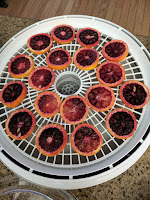 Alright y then just slice you citrus in 1/4 inch thin slices. Place your slices on your dehydrator shelves and dry on. My dehydrator has no temperature so I dry until my stuff is dry no moisture left. I also will take the tray's and put them on the table for a day or two to let the citrus air dry more. Seal them into air tight container and use in you water, cooking there are so many uses but that is yet another post!