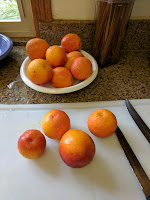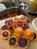 So I have the gift of living in SoCal and with that comes a bounty of citrus of every sort. Today I got a box of Blood Oranges from a neighbor and I have some Meyer from my own tree's and some limes left from another jam project.