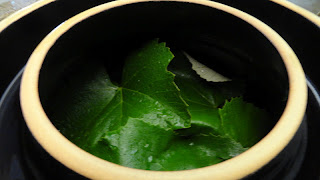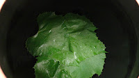 A few fresh leaves from a grape vine, or oak tree, if available.This is my first layer.