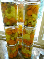 I love Pickled Garden Mix. It is kinda like a good soup. You can put what fresh crunchy vegetables are in your garden and wala Garden Mix. I grow a lot of vegetables in my garden and have found that there is so much variety to use in the kitchen.