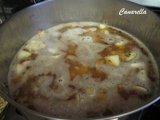 Get a nice simmer not to much. For only about 5 to 10 minutes they will completely cook in your pressure cooker. Have your warm chicken stock in a separate pot. Keep the water with your chopped potatoes you may need the extra liquid to fill the jars. You will be taking the potatoes from the water to fill the jars.