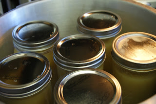 Add a tablespoon of 5% vinegar to the water in your canner it will get rid of any hard water stains that would be left on your jar's.