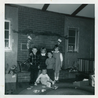 That same year we woke up Christmas morning (we had been warned ahead of time that Santa didn't have a lot of extra money that year so to not expect as much as usual)... each of us three older kids had a pair of boots under the tree (I was 12... mine were black lace up boots... so cool!)... Beth, the baby had several baby toys, a walker... the stockings (proper ones by this time) were filled with candy, fruit and nuts...