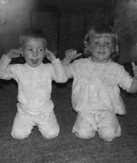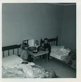 | My brother Jeff and I in our basement bedroom where I first "saw" Santa I got that record player for Christmas that year! |