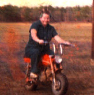 On the Christmas morning of the boots under the tree... Daddy insisted that we ALL accompany him in the shotgun shooting tradition... outside... in the cold... in our new pajamas and boots... and lo and behold... parked just at the bottom of the steps to the back porch, Santa had left a little orange mini-bike with the three Smith Kids names on it!!! Talk about some excited kids!!!! Me, being the oldest, and the bossiest... announced that I got the first ride... I cranked 'er up and took off, forgetting about the rock wall around the yard... yep... my glory was over in 20 seconds... no one was injured (only my pride)... and the riding continued, with us taking turns and being more careful, until the aunts and uncles and cousins and grandparents arrived for our traditional Southern Christmas Breakfast.