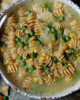 TO SERVE: Per quarts prepare 1/4 box of Rotini pasta to almost done. Add to soup and heat and simmer for 15 mins.