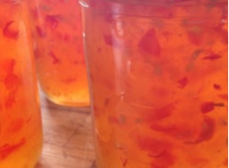 Place the jars in the water bath making sure that the water covers each of the jars by 1 to 2 inches. Add hot water to the canner if it doesn't measure up. Cover the pot and turn up the heat under the canner and wait for the water to start boiling. Once the water has come to a boil start your timer for 15 minutes.