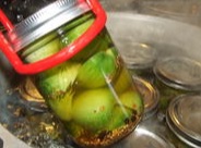 The beer brined green tomatoes will be perfectly pickled in about three weeks.