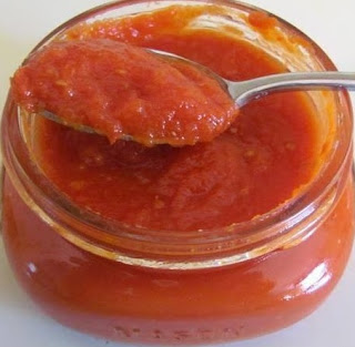 Transfer to blender, and process until smooth. When satisfied with the texture of the salsa, return to the sauce pan, and continue cooking until salsa has thickened (reduced by one fourth to one half, according to preference).