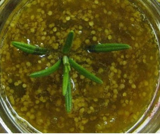 Pour into jars to 1/4 inch headspace, remove air bubbles, wipe rims and assemble lids. (Submerge a few leaves of rosemary (3-4 leaves) in the hot jam, making sure they are covered and there are no air pockets.)