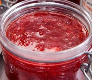 Return the saucepan to medium heat and add the sugar mixture, stirring with a wooden spoon until blended; it will be dry at first. Add the strawberries or strawberry purée, and continue to stir, crushing the berries with the spoon, until the mixture is liquefied and comes to a boil. Continue to boil, stirring constantly, until thickened, about 3 minutes.