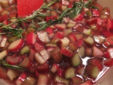 1. In a large-sized, non-iodized pot combine rhubarb, sugar, rosemary, and lemon juice. Stir to make sure sugar coats everything. Set aside for 30-45 minutes.
