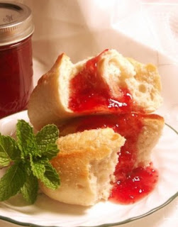 Now, you may be thinking right about now that, hey! this was more about the strawberries than the mint. I disagree. And so would you, if you tasted it. That one sprig of mint in the hot jam, infuses it with its essence. Wait a couple of weeks before popping open a jar, and see what you think. The mint permeates the jam, giving it a freshness – without being overpowering – that’s perfect on a buttered biscuit on a hot, sultry summer afternoon, perking up your peanut butter, or even (being a tad daring!) brushed on baked or roasted chicken as a glaze.