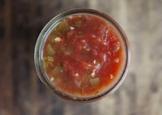 LADLE hot salsa into hot jars, leaving 1/2 inch headspace. Remove air bubbles and adjust headspace, if necessary, by adding hot salsa. Wipe rim. Center lid on jar. Apply band until fit is fingertip tight.