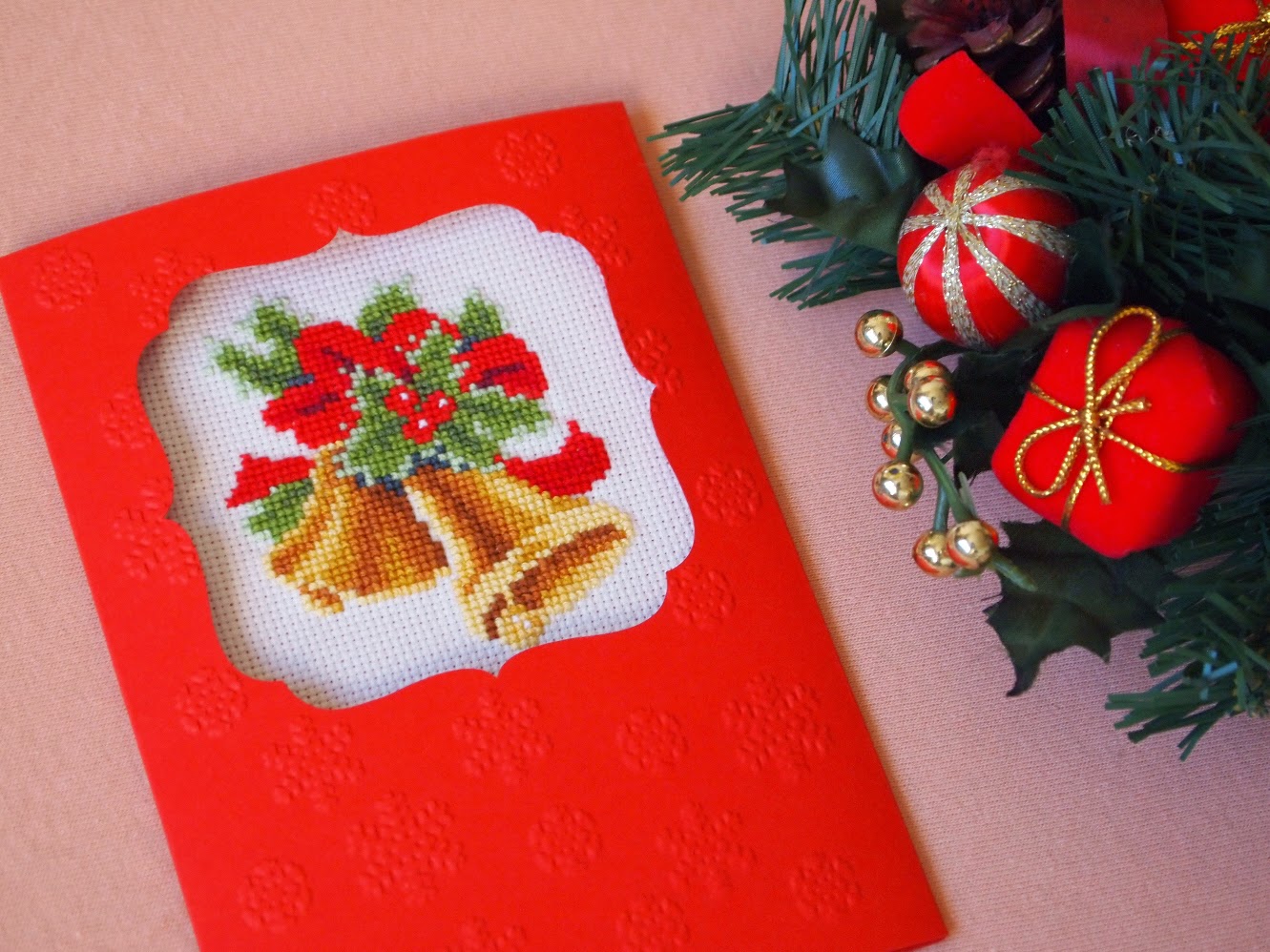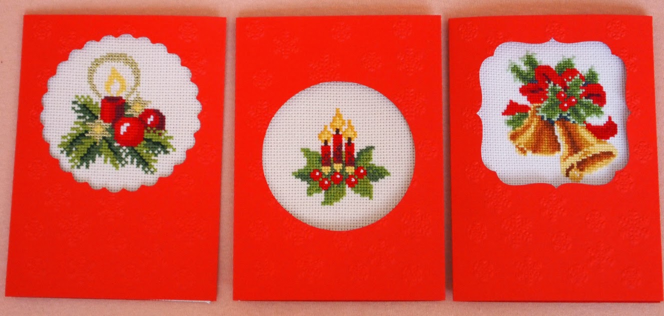 The three cross stitch greeting cards I managed to finish this season. The one with the two bells turned to be too big and complicated for a card, now I know that I should stick to simpler patterns and fewer colors when choosing a greeting card.