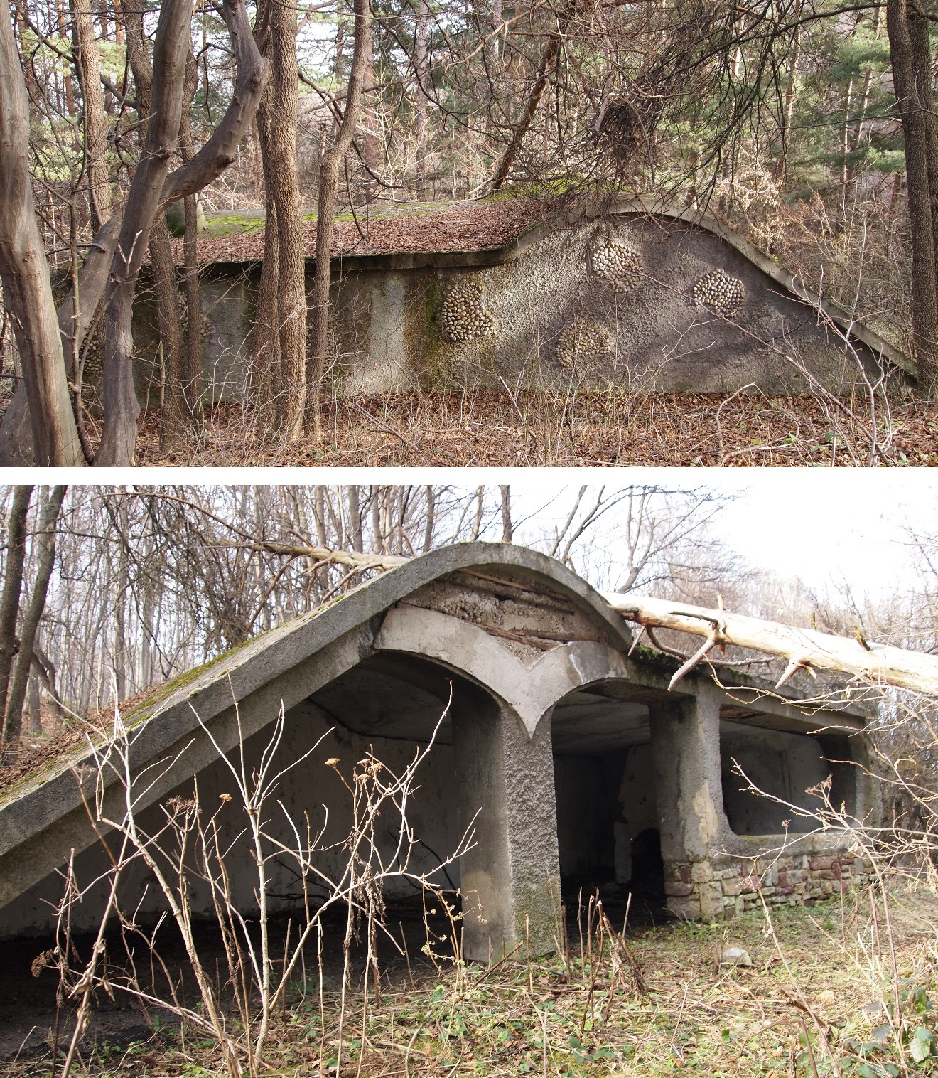 Пътеката излиза на широка поляна, от която тръгват три пътеки в трите посоки - наляво, напред и надясно. Поемате по дясната пътека, която минава покрай този интересен заслон: