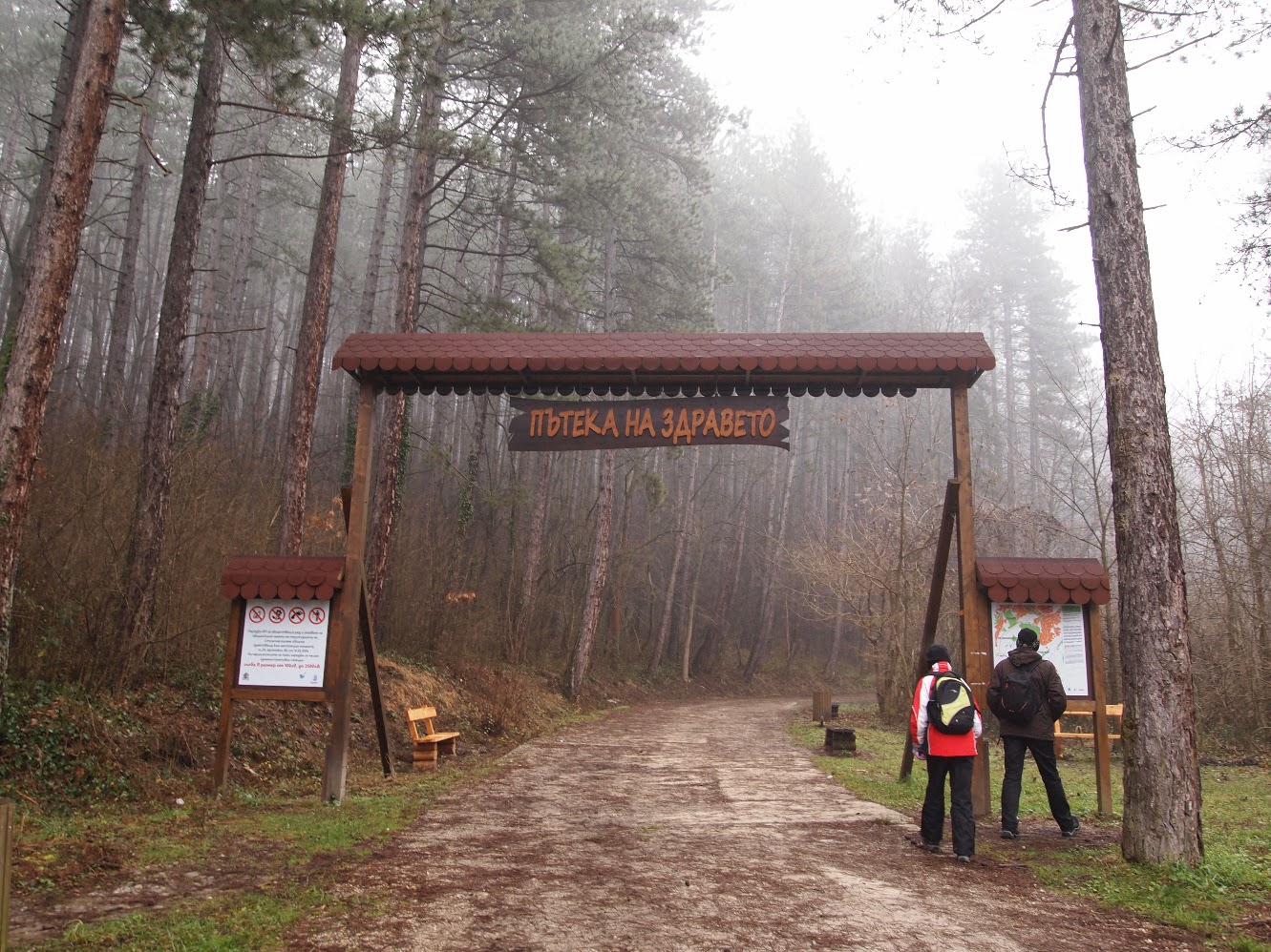 Despite the forecasts for sunny and pleasant winter weekend, these last two days Sofia was in the grip of a thick fog. But we had an escape plan - a short trip to Bankya, a nearby small town at the foot of Lulin mountain. To our disappointment when we approached Bankya the fog grew even thicker. Nevertheless we made the 6 km walk along the newly renovated Path of Health. It was gloomy, spooky and even a little scary, as we, walking alone along the zero visibility tracks, heard dog barks in the fog. A pack of malicious stray dogs can be a tourists' nightmare. Luckily we met with no dogs along the lonely tracks and the barks came only from the nearby village, of which we knew but couldn't see.