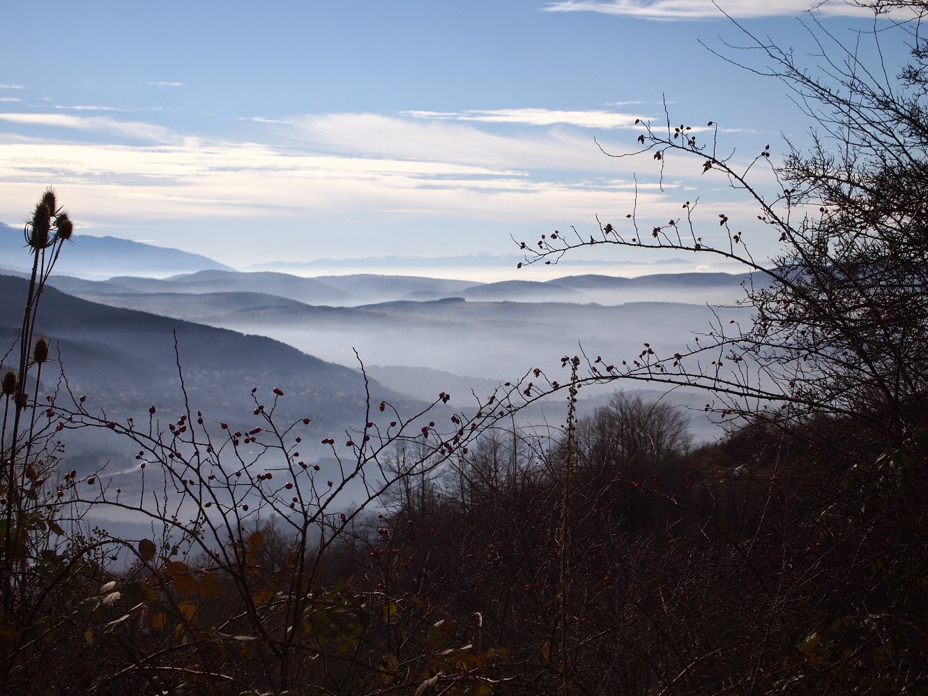 The day was sunny and warm for December and the climb was very pleasant. I was able to find only vague instructions about the route and was so happy to be able to find our bearings without any markings and make the optimal circular route. Looking at Sofia and the nearby villages and towns from above it was clear to us that late autumn and winter hikes should be done in the upper parts of the mountains, if we wanted to avoid hikes in the thick fog, as last week in Bankya.