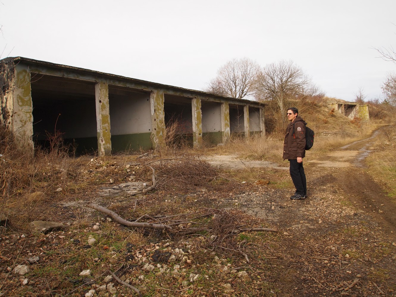 До военната база пътят е ясен :) Горе билото е застроено с хангари, казармена сграда, бункери, има и телефонен ретранслатор. Асфалтовият път отвежда до "централен площад", от който тръгват няколко пътеки. Към върха води най-лявата широка пътека, покрай поредица от хангари и бункери. Някъде тук свършва разбитият асфалт и започва черен път.
