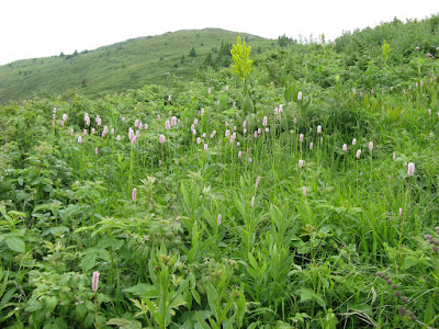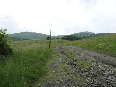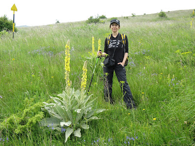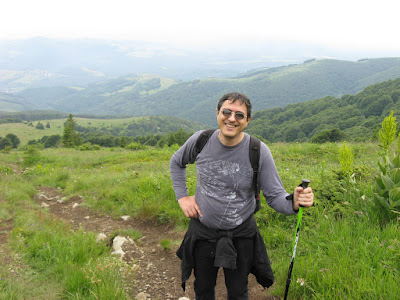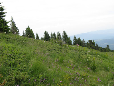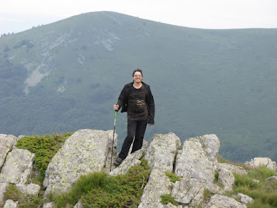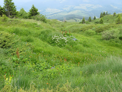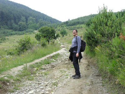 Yesterday husband and I hiked the steep path from the village of Zheleznitza to the training base of the National Sports Academy - Kupena Hut and the nearby peak (with unknown to us name). The weather forecast promised more rain and cold, as was the entire last week, very un-end-of-June-like. But this time the forecast was wrong and the weather turned out just excellent for hiking in open areas - a bit cloudy, with temperate temperatures and no rain. The path is very steep and fairly difficult and we used our new trekking poles for the first time. At the beginning of the track the poles were actually a nuisance and we quickly folded them back in the backpacks. But when we reached the steep slopes and especially the uneven and stone terrain at the end of the track the poles came very handy. And they were simply indispensable for climbing the peak, which we did without any track, traversing right through the bushes and stones.