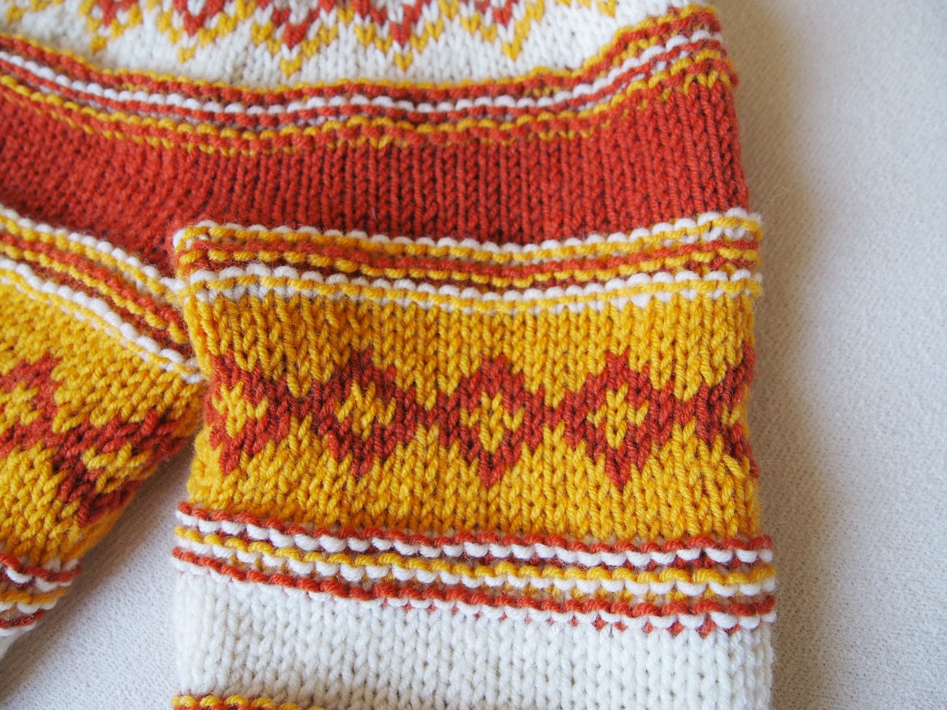 3) I changed the waist fitting, distributing more evenly the increases and the decreases, still keeping the stitches multiples of 6, where it was necessary (the stranded sections).