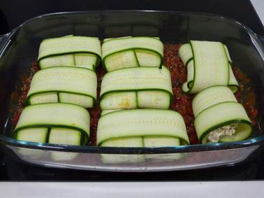Rellena cada lámina de calabacín con el