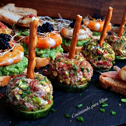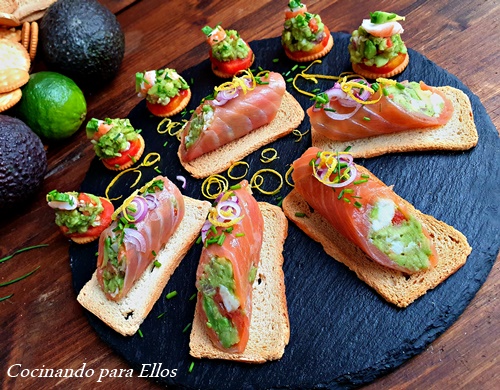 Canape de langostino y aguacate: