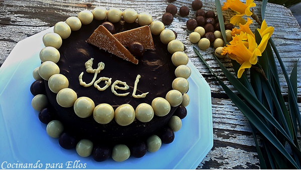 Es una tarta muy sencilla de preparar ya veréis y para la decoración yo he utilizado como podéis ver bolitas de chocolate, aunque esa es una elección muy particular .....
