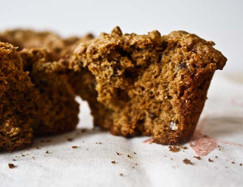 Spoon the batter into 12 greased muffin cups and bake for :45 - 1 hour (mine took exactly :45). Remove the muffins from the cups right away and serve warm, although they are delicious the next day as well.