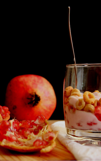 Juntei-as a um copo de iogurte, e adicionei cereais...