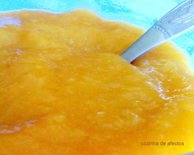 Misture muito bem a polpa das mangas, o leite e os iogurtes, até obter um preparado uniforme.