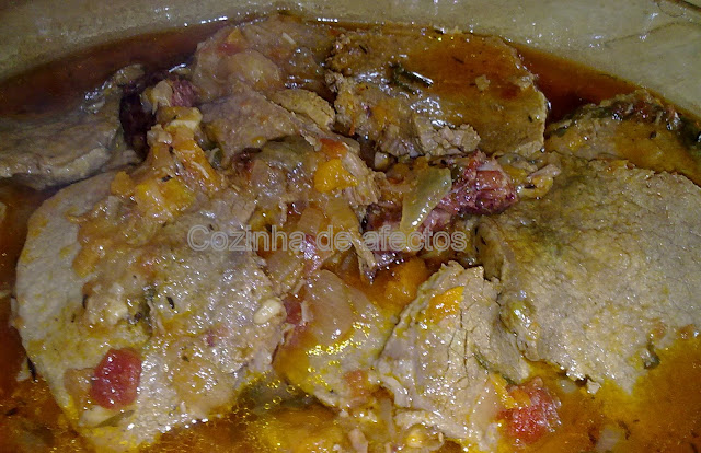 Junte agora as fatias de carne ao molho e deixe apurar.