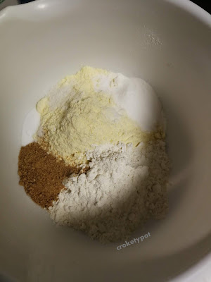 En un bol mezclamos los ingredientes secos (las dos harinas, el azúcar, la levadura, la sal y el bicarbonato).