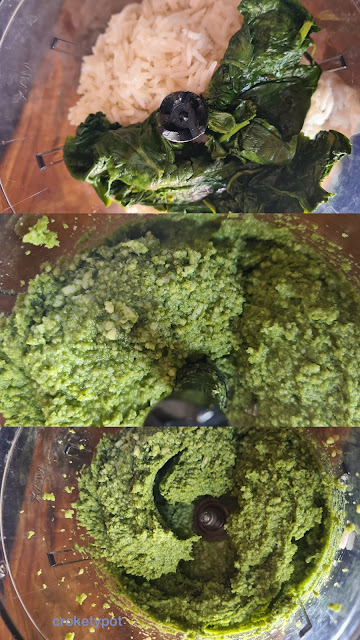 Le he hecho una modificación, en la receta original en lugar de espinacas utiliza cilantro, pero en casa no somos pro-cilantro, por lo que lo he sustituido. Además le he añadido una punta de comino, al cocinarlo el aroma que tenía lo pedía y creo que ha resultado un acierto.