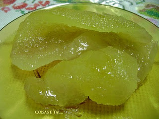 ....mas se a laranja for de casca verde....fica assim, a compota, bem verdinha...
