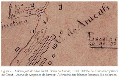 "Os primórdios da organização do espaço territorial e da vila cearense - algumas notas". Do excelente trabalho, "salvei" essas duas plantas da então Vila do Aracati, que ilustram o início dessa postagem.(figuras 2 e 3, do artigo citado).
