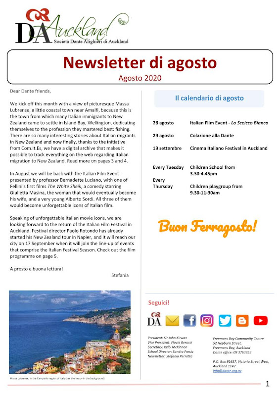 Auckland edition curated by Nicoletta Benella and organised by Dante Alighieri Society Auckland and Festival Italiano Auckland in collaboration with the Italian Embassy in New Zealand, Oratia Books, NEWMARKET.