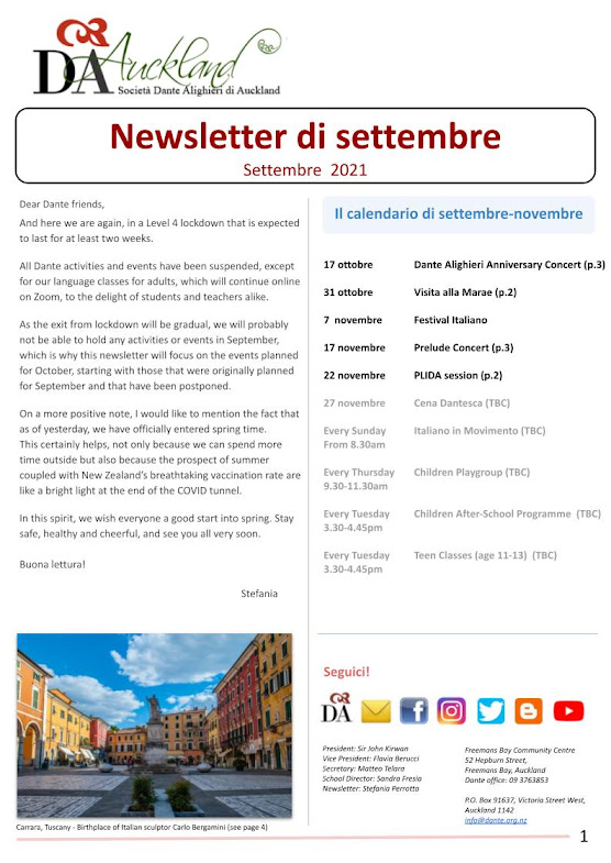 As you know, the Dante Alighieri Society of Auckland has become an official examination centre – the only one in New Zealand – for PLIDA (Progetto Lingua Italiana Dante Alighieri – Dante Alighieri Italian Language Project) exams, that certifies competence in Italian as a foreign language. The first exams took place in June, and the second – and last – session of 2021 is going to be held from Monday the 22nd November.