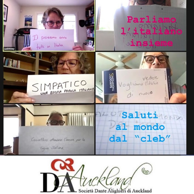 Si conclude oggi la settimana della lingua italiana nel mondo, purtroppo quest’anno Auckland è in lockdown e la Società Dante Alighieri Auckland non ha potuto organizzare eventi (l'anno scorso avevamo organizzato questa bellissima mostra su Gianni Rodari!), ma i nostri studenti di lingua hanno partecipato con entusiasmo alle iniziative promosse dagli insegnanti su zoom!