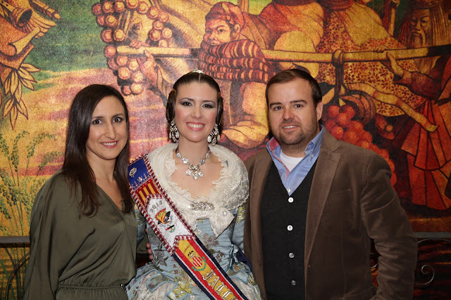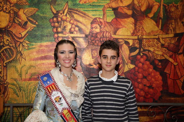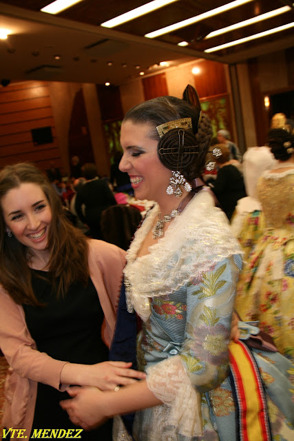 Así que como no podía faltar en este día, la quise hacer partícipe, y para sorpresa mía apareció vestida de valenciana, pues como ella bien dice, a un escenario no se sube si no es así. Y así puedo lucir el brocatel de Catalá que en 2004 estrenó como FM de la comisión Dr. Palos de Sagunto. Hasta eso tenemos en común!