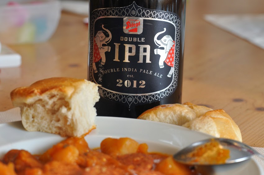 Schmalz in einem Topf erhitzen. Die Zwiebeln darin dünsten, bis sie Farbe genommen haben. Paprikapulver dazugeben, umrühren, mit Essig ablöschen und mit Suppe aufgießen. Erdäpfelstücke, Knoblauch, Majoran, Salz und Pfeffer sowie die Chorizoscheiben zufügen und so lange auf mittlerer Hitze garen, bis die Erdäpfel gar sind. Bei der Konsistenz des Gulaschs sind wir uns nicht so ganz einig. Ich mag es etwas flüssiger als mein Koch, also eventuell am Schluss noch etwas Suppe hineingießen und abschmecken. Mit einem frischen Semmerl und im Idealfall mit einem IPA von Stiegl (danke an den lieben Freund aus Wien!) servieren.