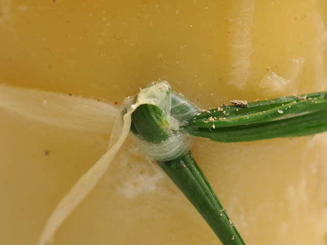 einige Streifen Porree, längs geschnitten und kurz blanchiert