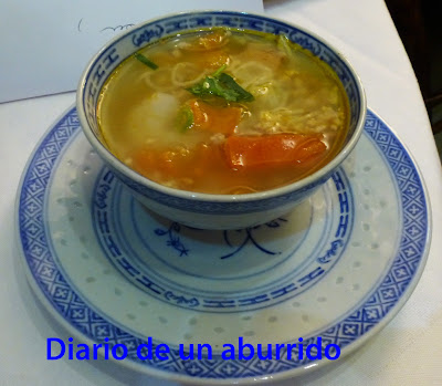 Luego nos dieron de cenar. El menú resultó interesante. Una sopa con tallarines para empezar:
