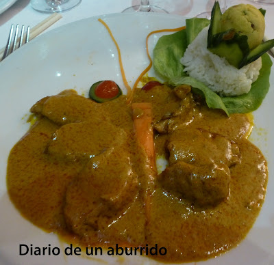 Habréis notado que lo simpático es que le habían dado forma de mariposa, con lo que queda muy decorativo. El magret estaba un poco fuerte, pero la salsa era deliciosa. En fin, que lo pasamos muy bien, que comimos bien y que no se nos cayó nadie en la sopa. Además, el león de papel (voy a ver si puedo poner el video) se ensañó con nuestra mesa, pegándoles lametones a los comensales (o a "las" comensales, es que estos leones de papel son la monda, no como los imperialistas que decía el camarada Mao)